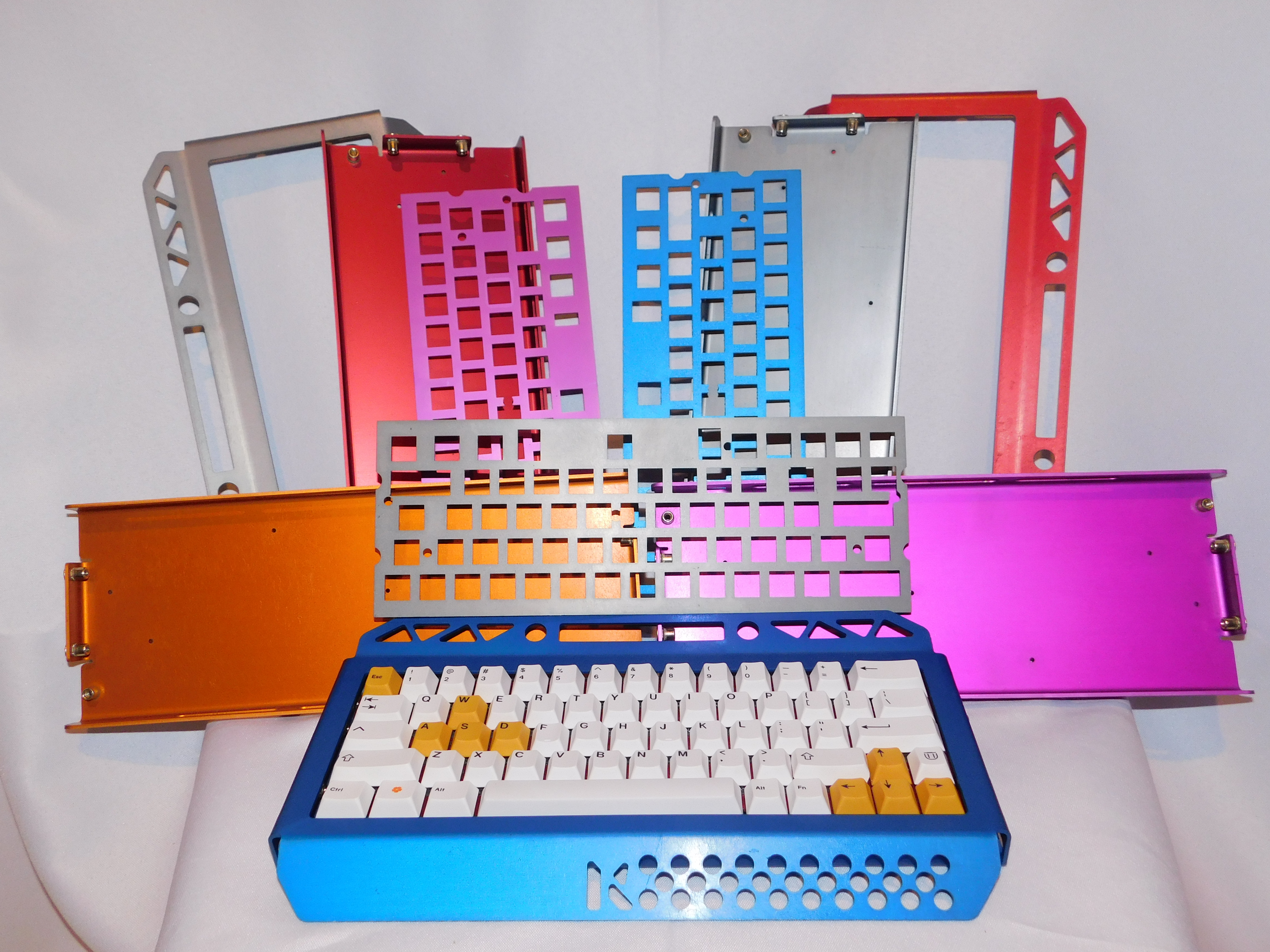Each keyboard is cut out of 5052 aluminum using a high precision CNC Laser machine. The aluminum pieces are then formed into their final shape using a CNC press brake. After building the part it is then anodized giving the keyboard a high quality, good looking protective finish. All of our keyboards are made in the U.S.A.
